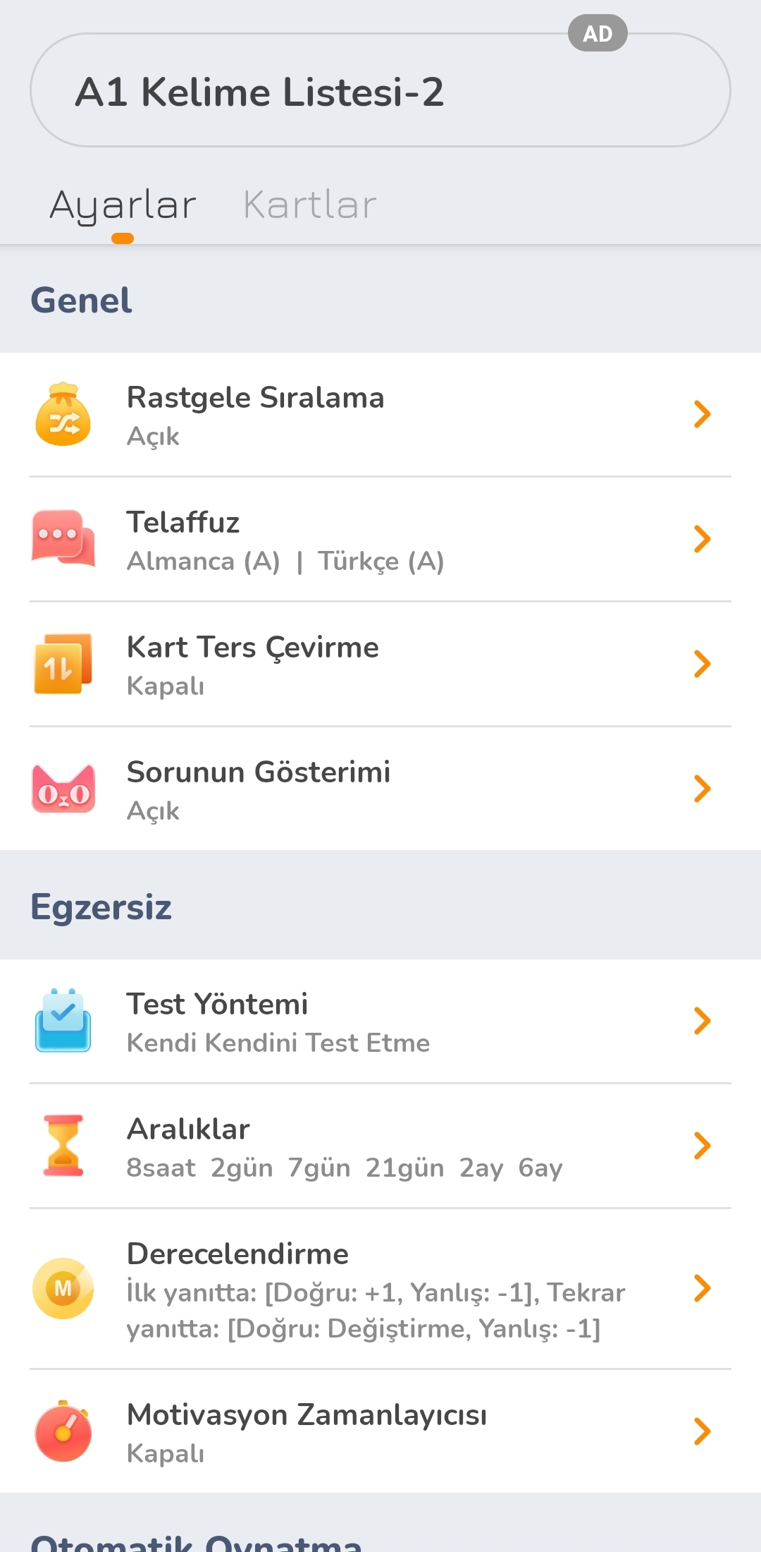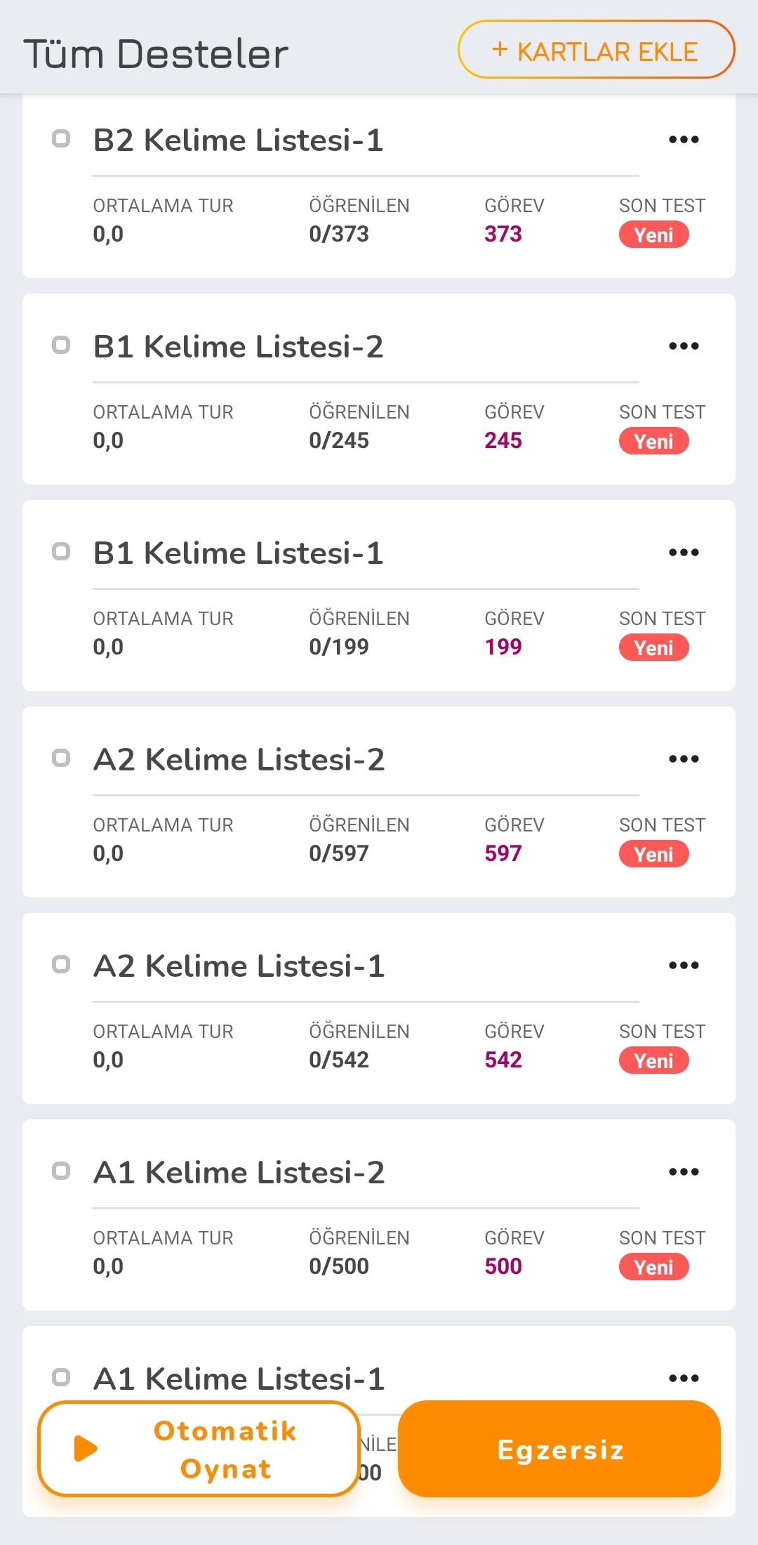 Almanca Kelime Kartı uygulaması ile almanca kelime listeleri oluşturup kelimeleri ezberleyip öğrenebilirsiniz.
